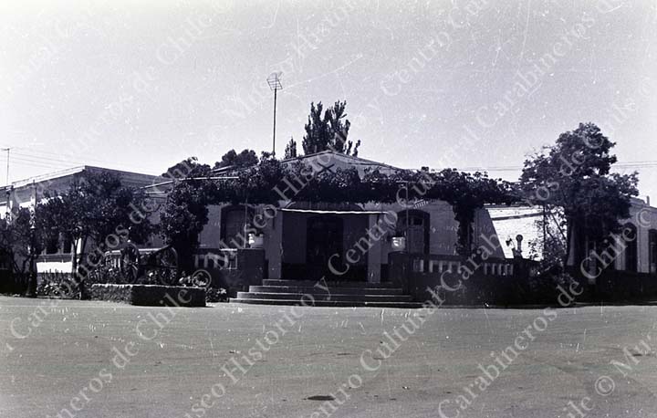 Edificio con un parrón en su frente que corresponde al antiguo Casino de Suboficiales de la Escuela de Carabineros