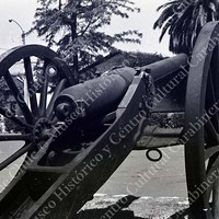 Cañón Armstrong de campaña ubicado en el frontis del antiguo Casino de Suboficiales.